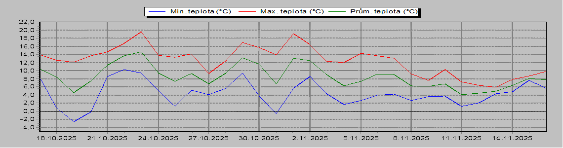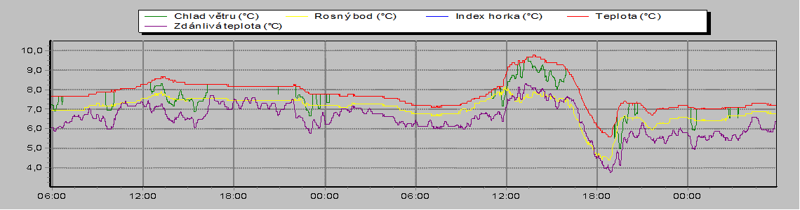 Grafy na této stránce zobrazují data naměřená meteorologickou stanicí a zachycují trendy vývoje počasí za posledních 48 hodin. Data jsou obnovována každé 2 minuty.