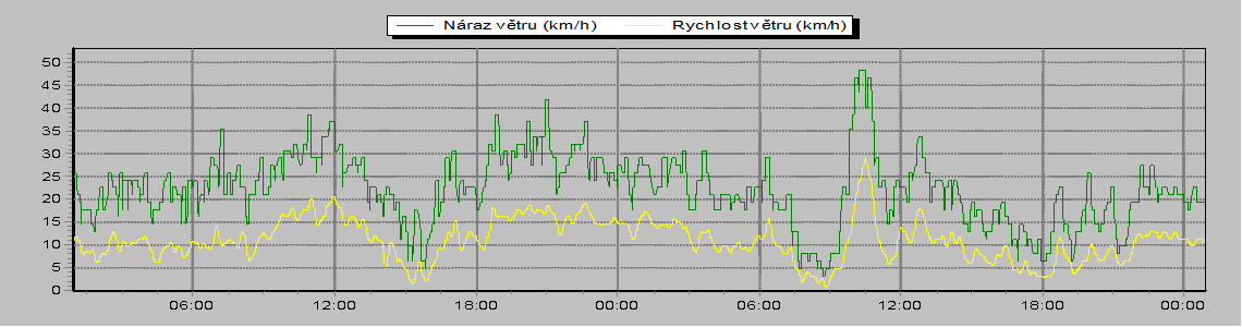 Grafy na této stránce zobrazují data naměřená meteorologickou stanicí a zachycují trendy vývoje počasí za posledních 48 hodin. Data jsou obnovována každé 2 minuty.
